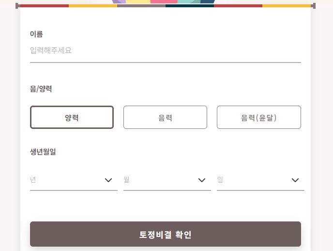 내일은에서는 정말 간편하게 양력/음력, 생년월일만 입력하면 내년 토정비결을 무료로 볼 수 있습니다.