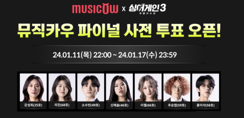 ✅ JTBC 싱어게인3 홈페이지와 뮤직카우 앱에서 가능합니다.
