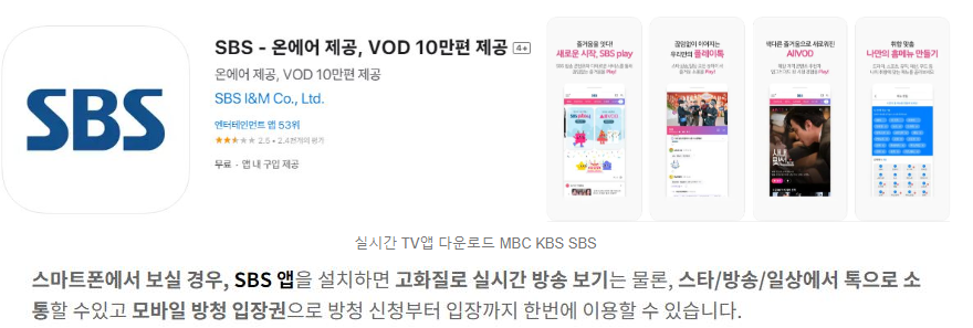 3. 실시간 TV 보기 앱 < SBS>