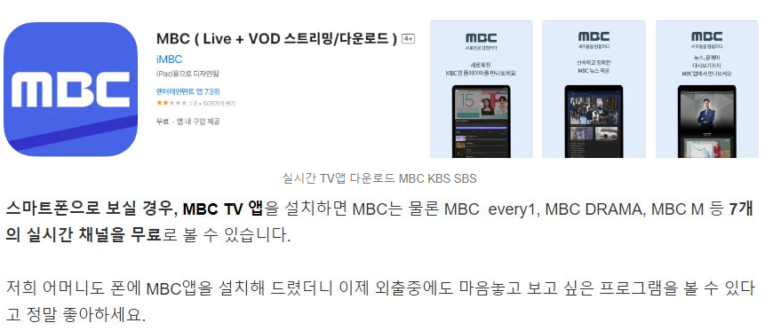 1. 지상파 실시간 TV앱 : MBC