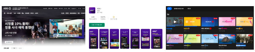 KBS 앱(KBS+)을 설치하면 KBS1, KBS2를 비롯한 40개의 KBS 실시간 채널을 볼 수 있습니다. 또한 무려 5만 개의 다시보기가 무료로 가능합니다.